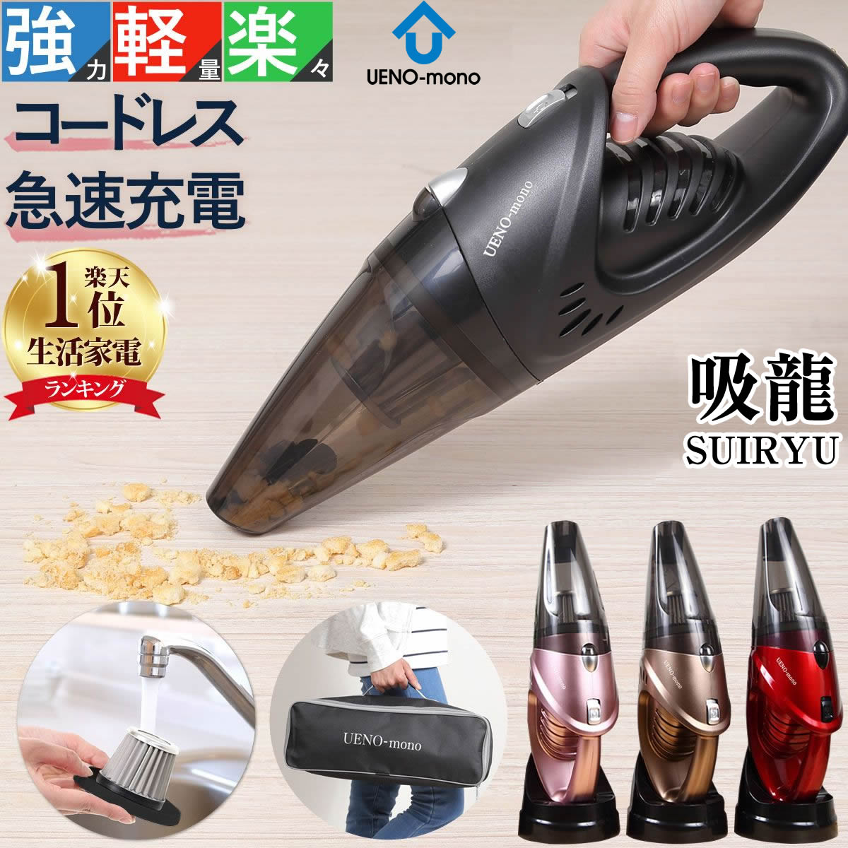 独身者から小家族向けの部屋、さらに一般家族における掃除機のサブとして便利な「2機種目の掃除機」です。コードレスとして使えるため、どんな場所でもキャンプにも持っていけます。