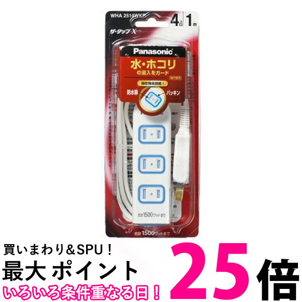 【ショップ・オブ・ザ・イヤー2019 総合賞受賞店】日本全国送料無料。Panasonic WHA2514WKP パナソニック ザ・タップX 4コ口 1m コード ホワイト 安全設計扉 パッキン付 コンセント 延長コード タップ 送料無料 【...