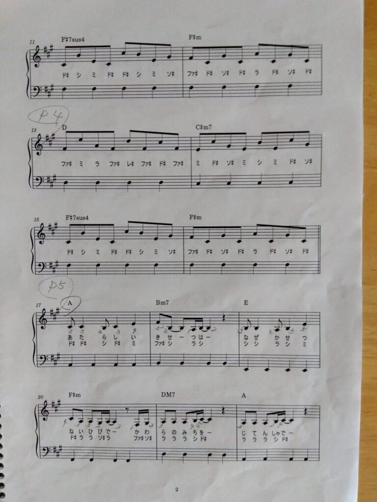仕方ないのでスピッツの演奏をYouTubeで聞き、譜面を見ながら、自分なりに使いやすい指で鍵盤を打ち、曲に合わせて弾くこととした。